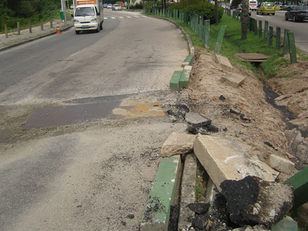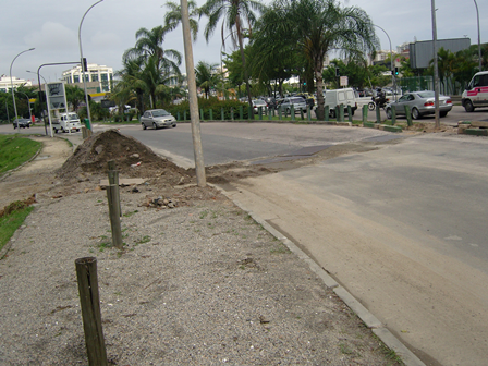 Após ofício do gabinete do vereador Carlo Caiado e diversas denúncias feitas aos órgãos competentes e imprensa, foram colocadas algumas placas de aço no local, o que apenas minimizou o problema. Grande quantidade de terra e de entulho permaneceram junto à Faixa de Proteção Marginal da Lagoa da Tijuca, representando o descaso com motoristas. |