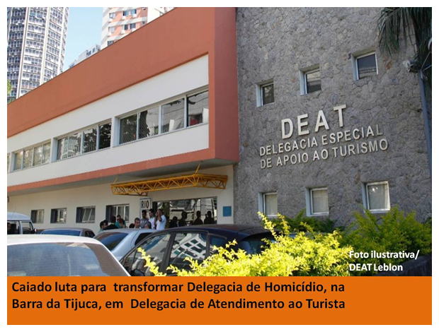 Durante reunião sobre segurança pública na Câmara Comunitária da Barra da Tijuca, ano passado, o Vereador Carlo Caiado, sugeriu ao secretário de Segurança, José Mariano Beltrame, que seja construída uma Delegacia de Atendimento ao Turista, no lugar onde hoje existe a Delegacia de Homicídios, no Jardim Oceânico e que será desativada em breve.