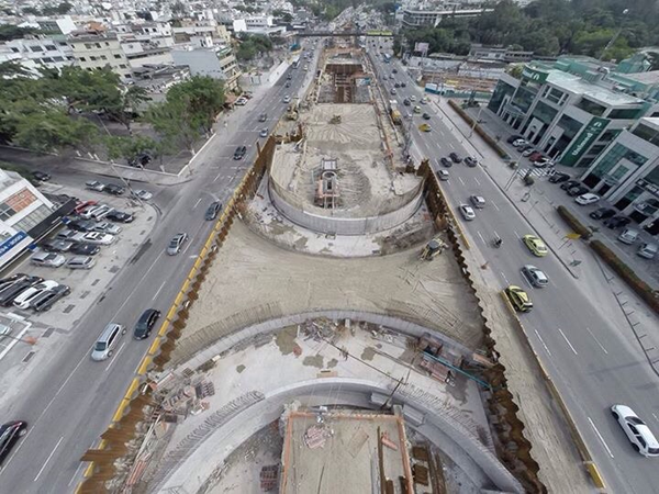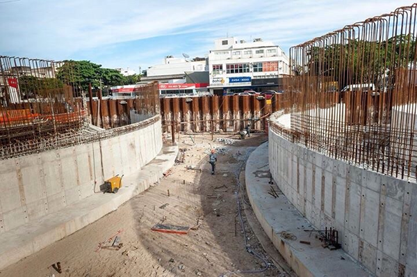 | Os mergulhões de retornos na Avenida Armando Lombardi já começam a ganhar forma. A obra já está bem avançada e ficará pronta junto com a estação final da Linha 4 do metrô, no Jardim Oceânico, prevista para entrar em funcionamento em junho de 2016. Conforme a foto atual da obra, já é possível verificar exatamente a localização da travessia de pedestres, com ciclovia, em frente à Unimed, que ficará sob o mergulhão. Nas fotos abaixo, estão as primeiras imagens da estação.