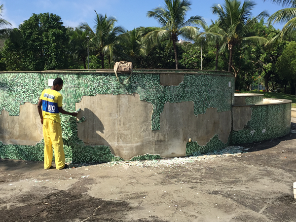 | A Praça Professor José Bernardino, mais conhecida como Praça do Pomar, no Jardim Oceânico, vai ter seu chafariz recuperado e as intervenções iniciais já foram iniciadas com a remoção das antigas pastilhas de revestimento do chafariz. Essa foi uma solicitação do Vereador Caiado à Secretaria Municipal de Conservação.