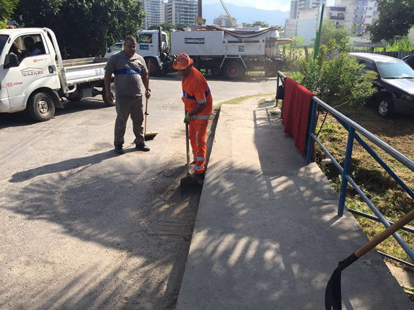 Atendendo a pedidos de moradores e ao ofício nº 090/2016, encaminhado pelo gabinete do Vereador Carlo Caiado, a Comlurb efetuou a poda de árvores na passagem de pedestres da ponte de madeira da Rua Clovis Salgado, sobre o Canal das Taxas, no Recreio dos Bandeirantes. As árvores estavam atrapalhando a iluminação, causando insegurança aos moradores.