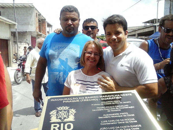 Já em Guaratiba, o clima de animação e entusiasmo dos moradores não foi diferente. Acompanhado do Prefeito Eduardo Paes e do Secretário Executivo de Coordenação de Governo, Pedro Paulo, o Vereador Carlo Caiado acompanhou a entrega de algumas ruas urbanizadas nas comunidades Piraquê, Vila Mar e Jardim Garrido. Presidente da Comissão Especial de Saneamento da Câmara de Vereadores, o Vereador Carlo Caiado sempre lutou por urbanização e saneamento na Zona Oeste. Na Câmara de Vereadores, o Vereador articulou a votação em regime de urgência para o pedido de empréstimo junto à Caixa Econômica para serem investidos no programa de urbanização. |